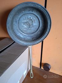 Padella in rame vintage decorata con foglie e frutti. Diametro: 23 cm