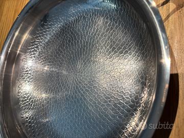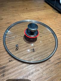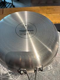 Padella in titanio, 26cm, con coperchio in vetro. Padella nuova in confezione originale. Vendo causa doppio regalo. Manico svitabile. Padella utilizzabile su fuochi, induzione o forno