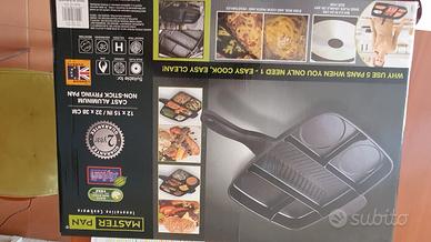 Padella con 5 scomparti indipendenti, per cucinare cose diverse come si può vedere dalle foto. La padella è ancora incelofanata, non è mai stata usata se non per una prova.