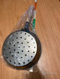La padella è nuova, mai usata, ancora nel suo cellophane.