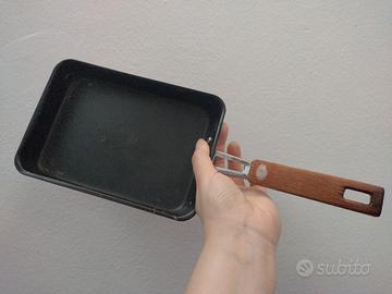 Padella rettangolare per omelette giapponese Tamagoyaki. Un po' rovinata, noi ci siamo appassionati tanto a questo tipo di omelette che abbiamo fatto l'upgrade a una padella professionale in rame. Per questo la diamo via. Utile per scoprire se le Tamagoyaki possono piacere anche a voi!