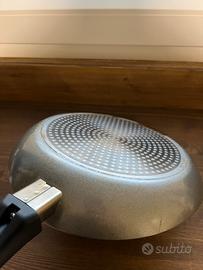 Vendo padella antiaderente della marca Stoneline da 23cm. Usata, ben tenuta a parte delle classiche macchie che difficilmente vengono via sul fondo. La parte antiaderente è intatta.