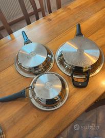 Padelle antiaderenti AMC, in acciaio inox, usate pochissime volte. Vendo per inutilizzo, adatte anche a piano a induzione.