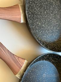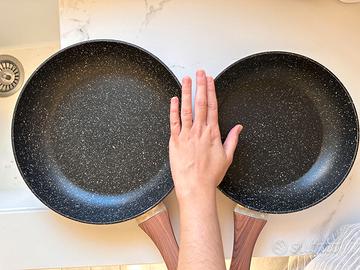 Vendo come da titolo Padelle Tognana coppia per gas e induzione. Misura 24 e 28 cm con manico effetto legno Buone condizioni, qualche segno di graffio da usura ma ancora utilizzabili Prezzo nuove 40€, vendo a 20€ Consegna a mano zona Bologna - casalecchio di Reno