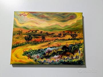 Bellissimo paesaggio olio su tela, misura 30x40 cm. Firmata e timbrata dall'autore (Rocco Paci, artista siciliano) opera autentica. Adatta per arredare qualsiasi ambiente o ottima idea regalo.