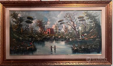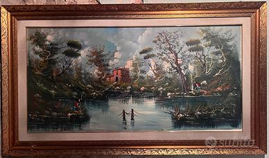 Quadro vintage con cornice in legno decorativa tipica degli arredi di metà o fine novecento Olio su tela misure 1,40 larghezza 85 altezza