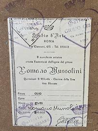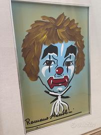 Pagliaccio, Olio su tela. Originale Romano Mussolini con certificato di autenticità. Stile: Rappresentazione figurativa di un volto di pagliaccio, un soggetto molto popolare nelle opere dell'artista. Firma: Il quadro presenta la firma "Romano Mussolini" sulla parte anteriore, come da prassi in basso a sinistra. Dimensioni cornice 37x47cm Autenticità: certificato di autenticità sul retro, rilasciato da Studio d’Arte, via Giannutri 6/5, Roma. Quotazione primi anni ‘80 Lire 200.000. Possibile spedizione oppure consegna a mano a Fiesso d’Artico, Dolo, Mirano.