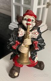 Simpatica statuina raffigurante un pagliaccio che suona la tromba.