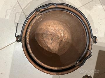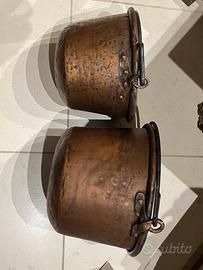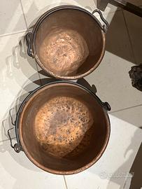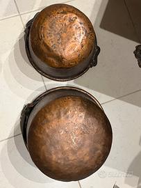 Coppia di paioli in rame idonei per cucinare diametro 32 e 28 cm