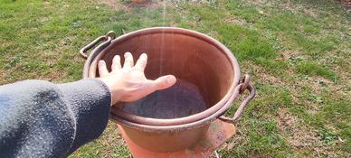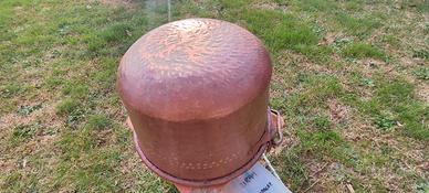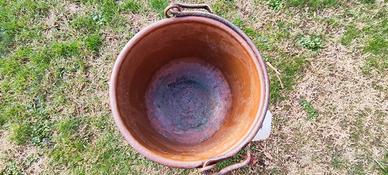 paiolo in rame con manico in ferro, oggetto originale del tipo di quelli usati per fare la polenta.