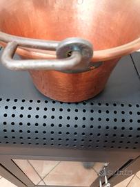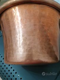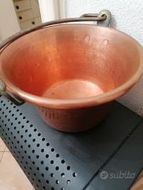 Paiolo in rame martellato usato per cuocere la polenta o come oggetto di arredamento. Peso un chilo e mezzo circa alto 15 cm diametro parte superiore 25 cm parte inferiore17 cm.