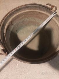 Vendo 2 paiolo in rame uno di medie dimensioni con annesso treppiedi e uno di grandi dimensioni, non bucati.