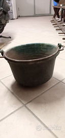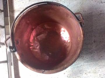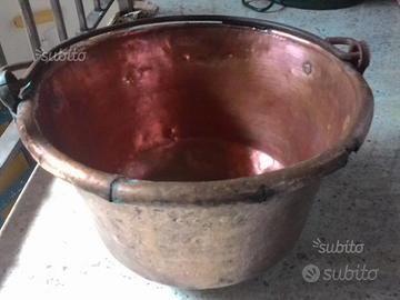 Paiolo in rame. Diametro interno 34 cm. Altezza 24 cm circa. Peso 5 kg. Prezzo 70 euro. Consegna previo accordo di uno o entrambi, solo zone limitrofe. Paiolo in rame più piccolo Diametro interno 29 cm Altezza 21,5 peso 2,4 Kg. Prime tre fotografie prezzo 50 euro. Entrambi sono autentici antichi usati dai nonni a suo tempo. Uno è stato pulito ed uno si trova nel suo stato originale. Dispongo inoltre di altri sempre in rame