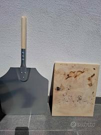 Pala per Pizza in Alluminio con Manico in Legno 30,5 x 35,5 cm, Lunghezza Totale 61 cm più Pietra refrattaria per pizza da forno 30 x 38 cm. Usati una sola volta, come nuovi.