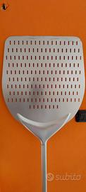 La pala si presenta tutta bucata per poter far passare la farina sotto le pizze