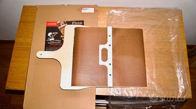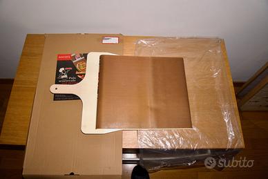 Pala scorrevole per infornare pizza. Mai usata, compresa confezione originale. Brand: TTEX Materiale: legno di alta qualità; Facile da pulire. Prepara con facilità: pizze, pane, pasticcini, muffin, cup cake e vari dolcetti. Colore: Marone Larghezza: 30 cm Altezza: 50 cm Profondità: 2.4 cm Peso: 1.07 kg