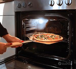Relaxdays Pala per Pizza Quadrata, Arrotondata, HxLxP: 3x30,5x79 cm, Manico in Legno, Paletta per Pane, Forno, Grigio, Acciaio, Argento,