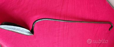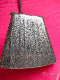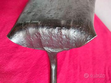 Risulta essere stata prodotta in maniera artigianale, in ferro battuto. Si nota in particolare nella pala che si presenta ondulata e in lamiera spessa. Buone condizioni , non presenta saldature o altre riparazioni. E' stata ripulita dalla ruggine, che ha lascato i segni visibili dalle foto, e il ferro si presenta naturalmente brunito. Lunghezza complessiva 57 cm; pala: imbocco 12, profondità 12 cm. Si trova a Carpi (Mo). Disponibile per spedizione con Tuttosubito, con corriere dedicato (da concordare) e spese a parte.