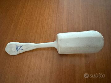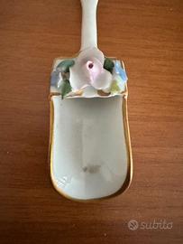 Vendesi raffinato cucchiaino/paletta per zucchero in porcellana bianca finemente lavorata. L'oggetto presenta una decorazione con rosellina in rilievo e rifiniture artigianali in color oro. Un pezzo di antiquariato ideale per amanti del genere o per un regalo di classe. Materiale: Porcellana Stile: Capodimonte / Shabby Chic Stato: Molto buono Disponibile per spedizione o consegna a mano.