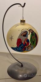 Palla di Natale grande in vetro diametro 12cm. Dipinta a mano. Compreso lo stand.