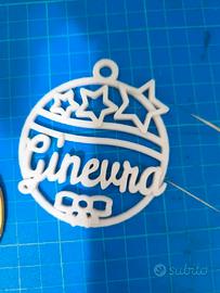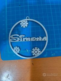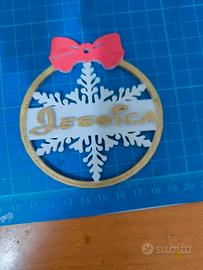Pallina di Natale personalizzata, con possibilità di scegliere il nome , la forma ed il colore, con aggiunta anche del fiocchetto del colore a piacimento .