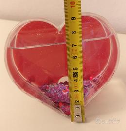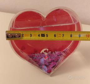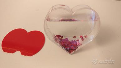 Portafoto a forma di cuore con glitter e cuoricini rossi in sospensione in liquido.