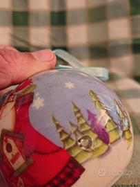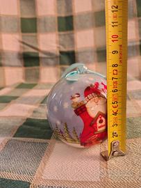 Pallina per l'albero di natale, decorata con pupazzo di neve e babbo natale.