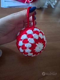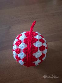 Pallina di Natale artigianale realizzata all'uncinetto nei colori bianco e rosso. Possibilità di realizzarla in altri colori (es. bianco e verde, verde e rosso ecc.).