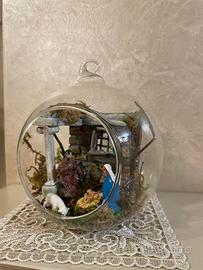 Pallina di natale con presepe, utilizzabile sia come soprammobile che sospesa all’albero di Natale.