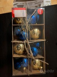 Nuove mai state utizzate 8 Blu piccili e 4 palline dorate grande con fili dorate