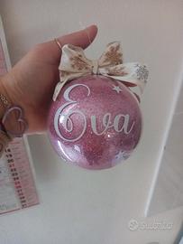 Realizzo palline personalizzate (scritta vinile bianco e colore glitter a scelta). Con scatolina.
