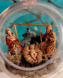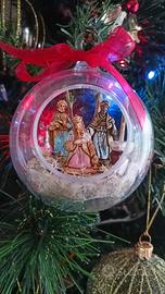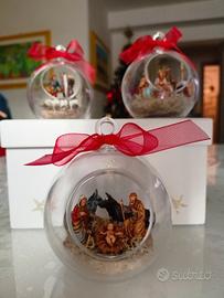 Si tratta di tre palline natalizie trasparenti in plexiglass da 6,5 cm trasformate in piccoli diorami che raffigurano le scene principali del presepe.