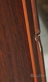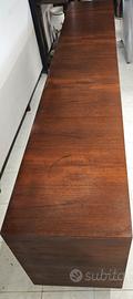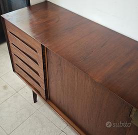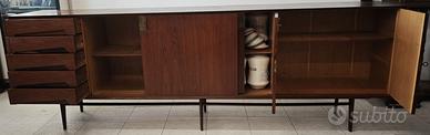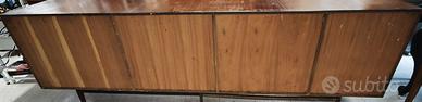 Elegante e imponente credenza/sideboard con struttura in teak, impiallacciatura in Palissandro ed interni in rovere, databile agli anni ’50-70, attribuibile al celebre designer Edmondo Palutari per la storica produzione Vittorio Dassi. Il mobile presenta 5 cassetti laterali con frontali sagomati e inclinati, ed ampi vani contenitivi con ante scorrevoli e battenti impreziosite da eleganti dettagli e serrature coeve in ottone. Chiave coeva presente. 📏 Dimensioni • Lunghezza: 267 cm • Altezza: 87 cm • Profondità: 47 cm ✔️ Ottime condizioni generali: il mobile è in prima patina, presente una piccola rottura su un angolo, che verrà ripristinata al momento della vendita. Nessuna mancanza. ✅ Ritiro a mano zona Salerno ✅ Spedizione in tutta italia da concordare Mercatino dell'antiquariato Tiriciclo , Salerno