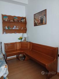 Vendo per cambio arredamento panca ad angolo con tavolo e piattaia in legno, ottimo stato. Le misure sono nelle foto.