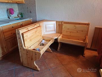 Panca angolare in legno per uso interno con seduta contenitore f.to 135X135 h 85 profondità seduta 53 cm.