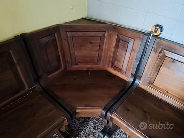 Vendo causa trasloco panca da cucina angolare in legno per taverna in buono stato, musure 1300x480x890, 640x640x890, 800x480x890, rispettivamente la panca lunga, l'angolo e quella corta, disponibile anche una mensola da appendere con 3 cassetti nello stesso stile; il tutto è visionabile in loco.