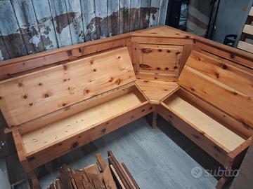 Vendesi panca angolare il vero legno di pino , fatta fare anni fa su misura da falegname .