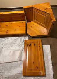 Splendida panca angolare in vero legno di pino massiccio colore rovere in stile rustico/alpino. Molto robusta e in ottime condizioni. ✅ Pratica: Entrambi i sedili si sollevano con ampio vano contenitore interno. ✅ Salvaspazio: Design ad angolo ideale per cucina o taverna. ✅ Trasporto facile: La panca viene venduta già smontata, pronta per essere caricata comodamente in auto. ✅ Dimensioni : 132X192 cm 💰 Prezzo: € 180 Trattabili 📍 Ritiro a: Soliera Regalo in abbinamento tavolo Scavolini 130X80 cm ma allungabile!! Contattami in privato per foto extra o per venire a vederla!