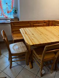 Vendo panca , componibile in pino , con sedute apribili. Il tavolo e le seggiole sono già vendute