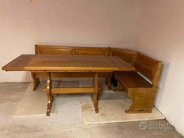 Panca angolare con schienale e sottopanca in legno massello + tavolo allungabile come da foto Smontabile buono stato € 550