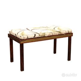 Panca legno impiallacciato jacaranda, lamina in ottone, cuscino in espanso,