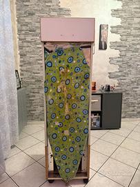 Panca in legno costruita a mano con asse da stiro nascosto nel retro (si apre sganciando delle sicure e scorrendo verso il basso tramite dei "pistoni")