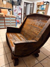 Panca realizzato con botte in rovere molto pesante ed antica pezzo unico misura lunghezza 140 altezza 116 larghezza 106 ci vuole un furgone e minimo Due uomini forti per caricare