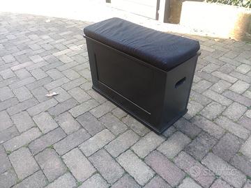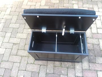 Panca con vano contenitore e cuscino. Marca Ikea. Modello Alve. Misure70x30x45h cm. Color antracite. Munita di ruote e maniglie laterali. Ottime condizioni. 30€