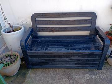 La panca è in resina con ampio contenitore.