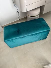 Panca contenitore in legno rivestita di vero velluto color ottanio fatta su misura da falegname