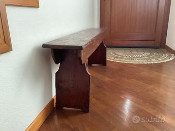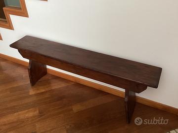 Panca da chiesa fine ‘800 in legno dalla costruzione semplice e lineare, presenta gambe sagomate e seduta a tavola unica. Struttura solida, restaurata. Misure: H cm 46, Prof. cm 23, lungh. cm 130 Ritiro di persona