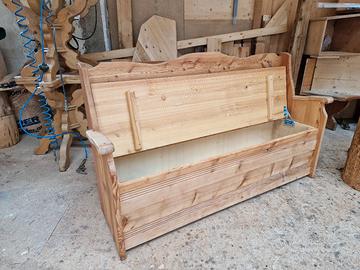 panca da esterno in larice massiccio con ampia ribalta. trattata con vernice per esterno. non facciamo spedizioni, solo ritiro con propri mezzi
