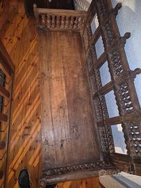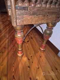 Vendo panca etnica in perfette condizioni in puro legno massiccio con gambe/piedi colorati come da foto.Lunghezza 120 cm profondità 45 cm.