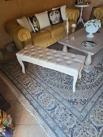 Panca Camera da Letto Vintage a Bottoni, Panca Imbottita con Gambe in Legno per Ingresso, Corridoio e Soggiorno, 110x40x48cm, Beige.